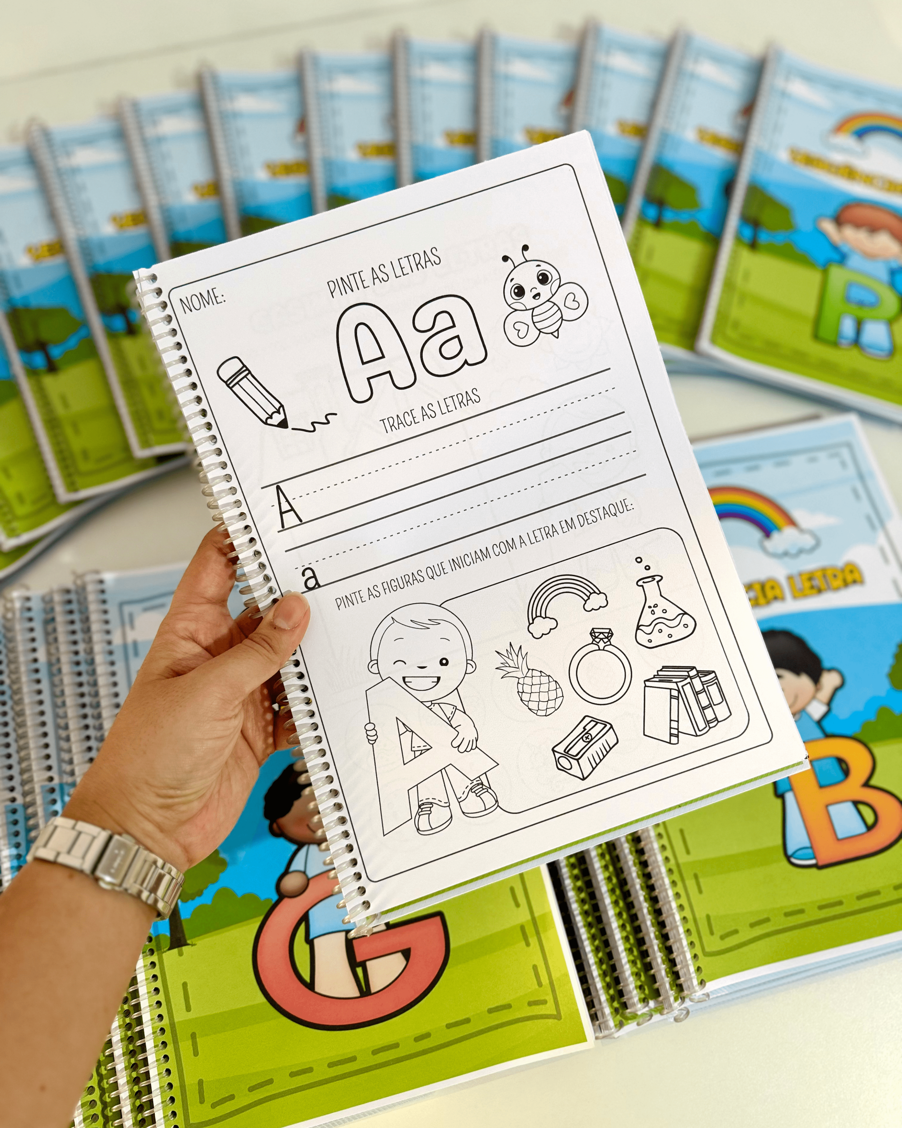 alfabetização. No total são 24 páginas de atividades em cada apostila, somando mais de 600 páginas de