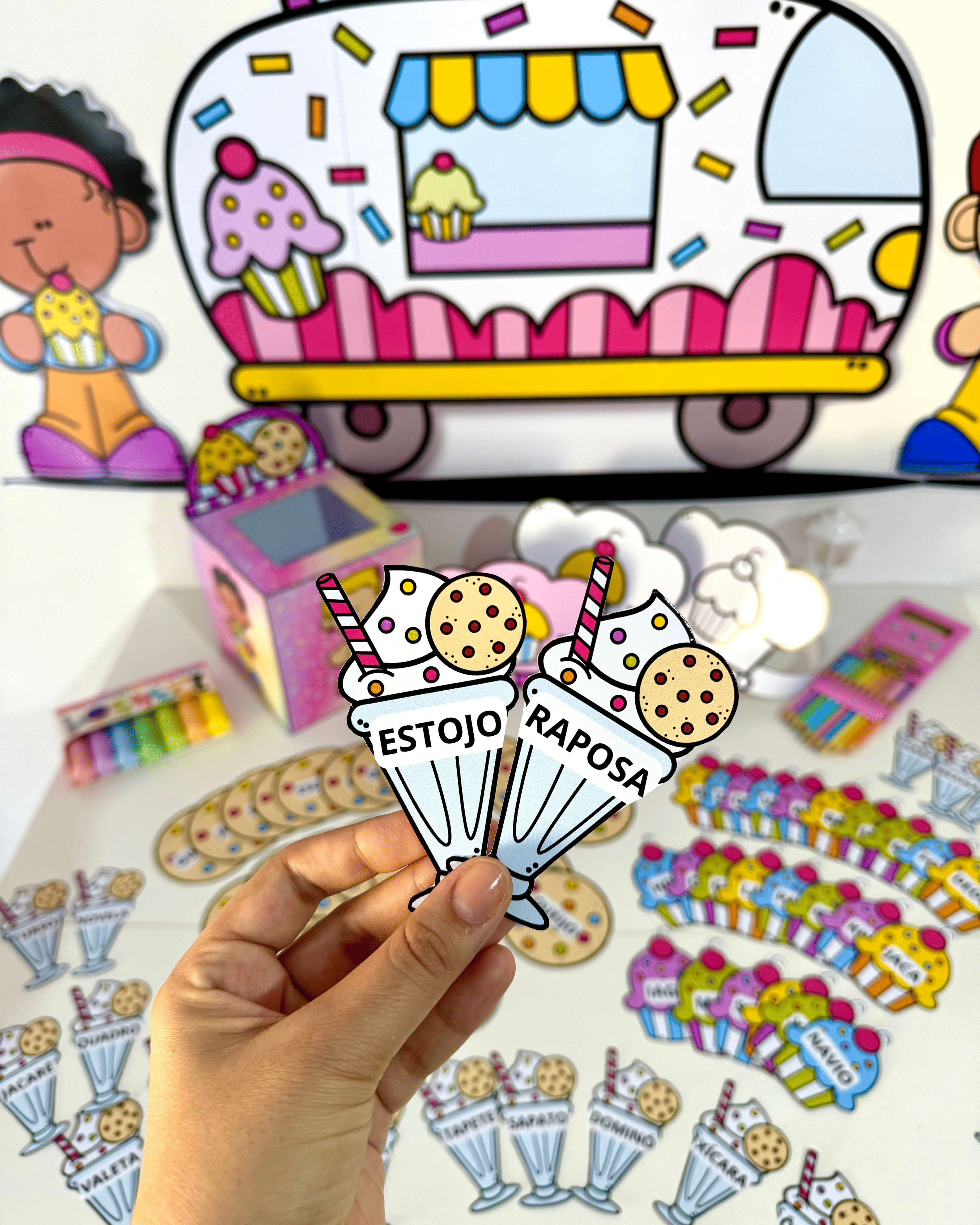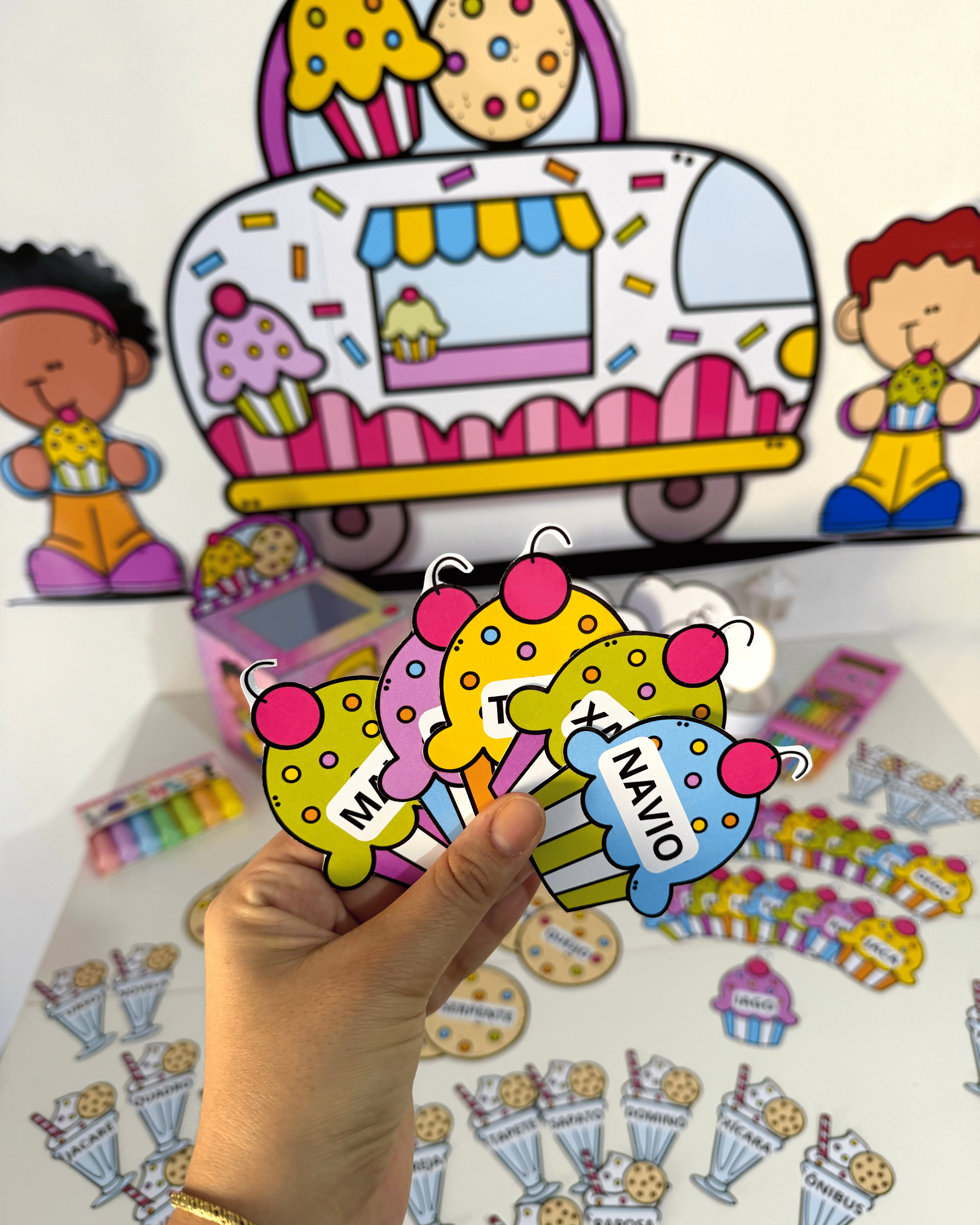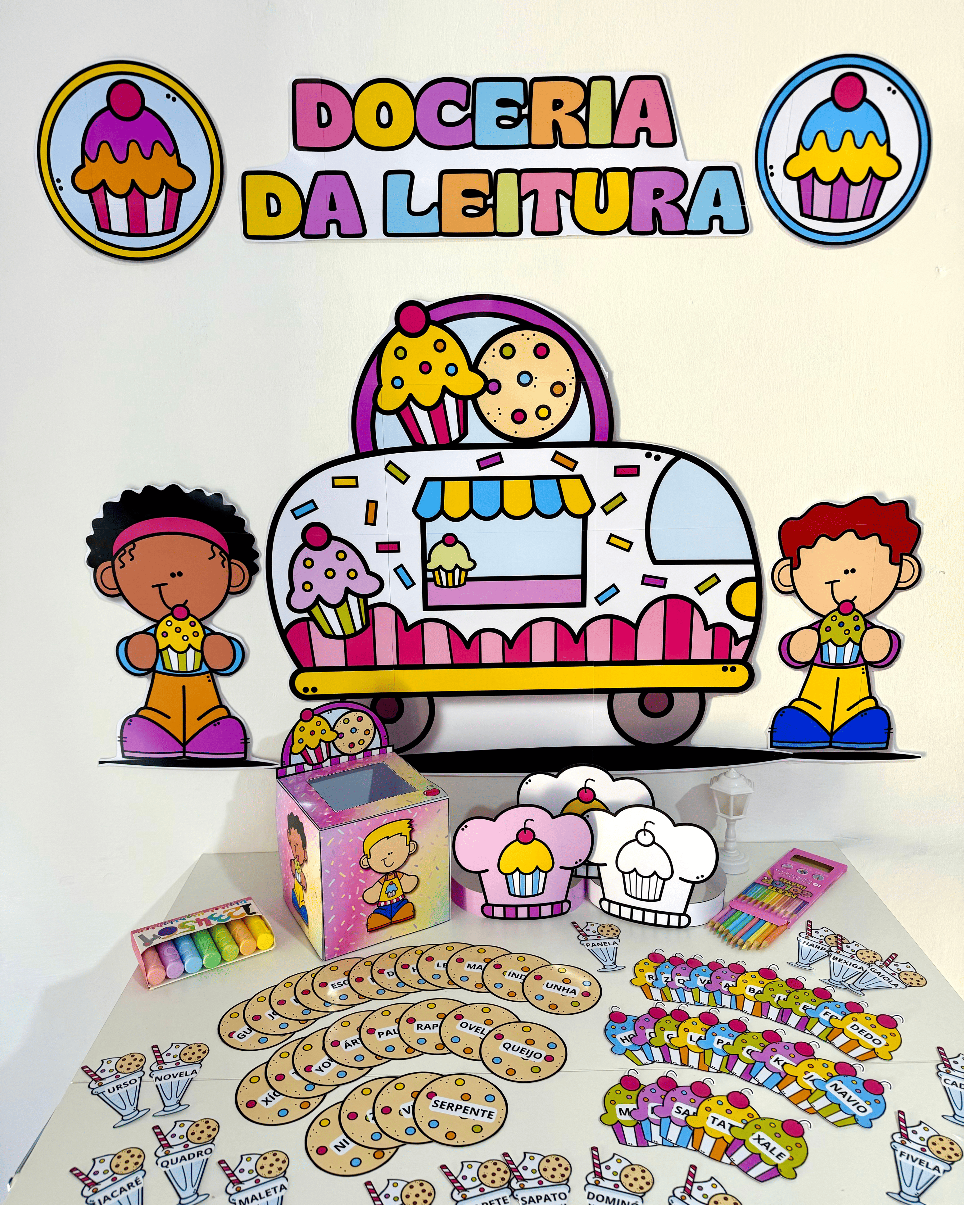 Descrição: Kit Doceria da Leitura para trabalhar leitura de palavras de forma divertida e dinâmica.